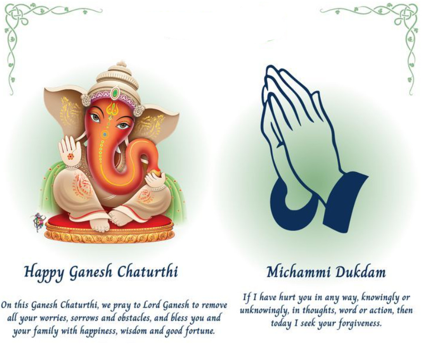 Firstly, Happy Ganesh Chaturthi and Michhami Dukkadam! If I have hurt you knowingly or unknowingly, in thought, word, or action, I seek your forgiveness on this day of Jain Samvatsari, and May Lord Ganesh bless you with success and good fortune.