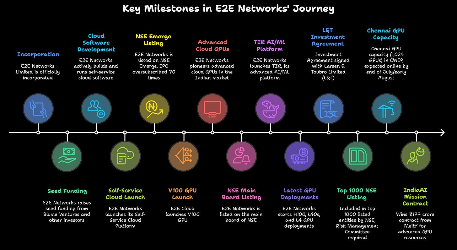 Global vs Local: While AWS/Azure chase global AI SaaS workloads, E2E positions itself as India’s trusted infra backbone—aligned with the govt’s IndiaAI Mission.