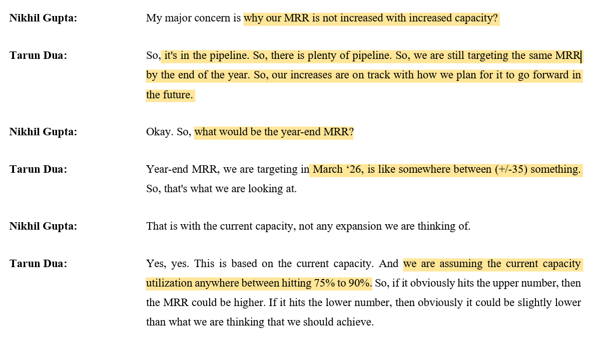 MRR trajectory toward ₹32–38 Cr exit run-rate.