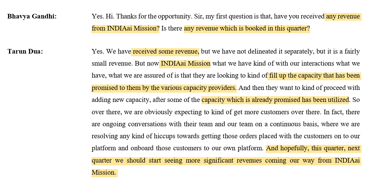 Cautiously optimistic on IndiaAI Mission revenue ramp.