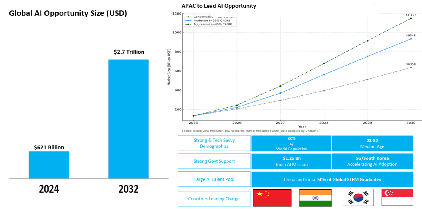 AI Compute Race: Global AI infra market = $62.1B → $2.7T by 2032.