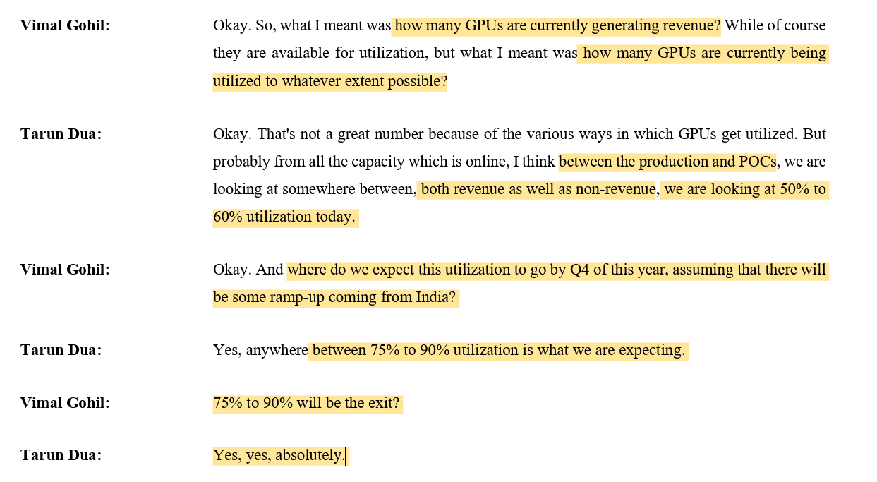 GPU utilization: 50–60% now → mgmt targets 75–90% by Q4.