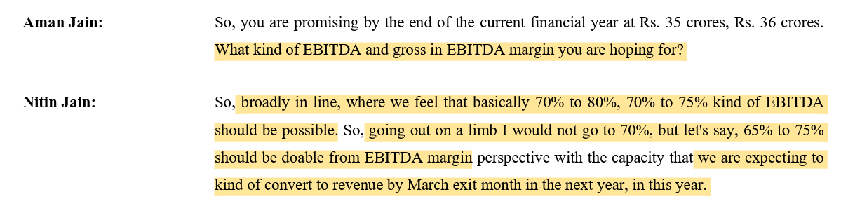 EBITDA Margins Target: 65–75% achievable once utilization scales. Management is Confident and specific, providing a clear margin range with a slightly conservative nuance, indicating high margin expectations as revenue scales.