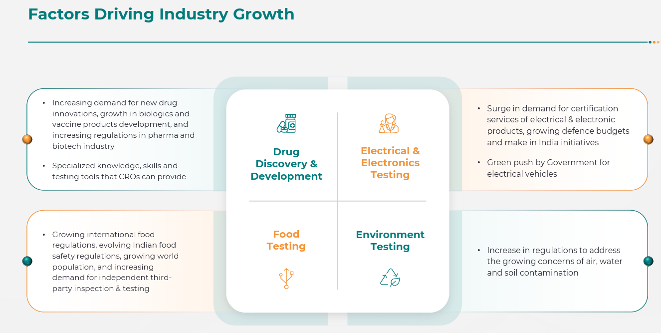Spurs demand for certified testing services from CROs, as companies will need labs with NABL/GLP/GCP accreditations to validate products.