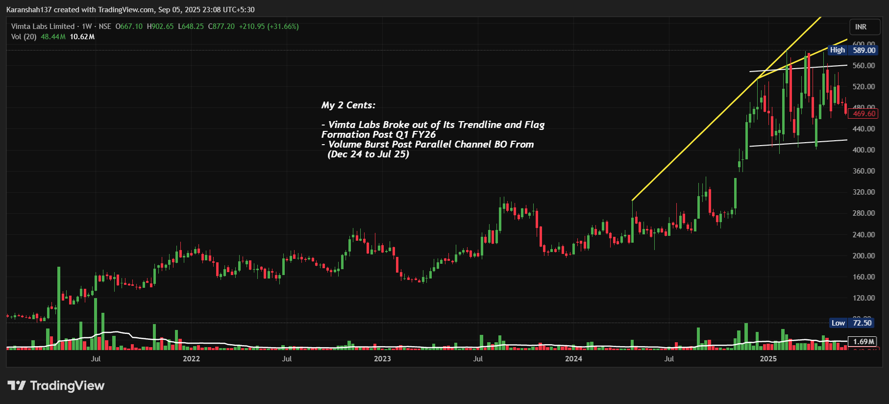 - Flag and Pennant Formation: Classic continuation pattern post Q1 FY26 results