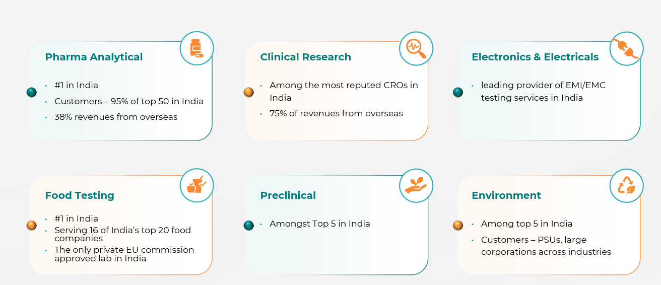 Think of Vimta’s business as a diversified “testing bouquet,” with revenue streams spread across high-margin pharma services and steady cash-flowing adjacencies.