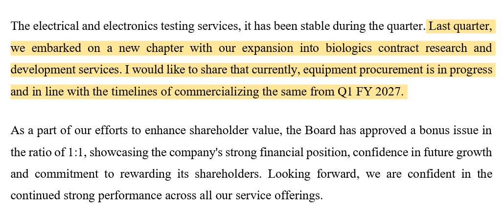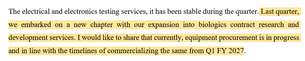 Medium term (FY27): Biologics CRDMO launch becomes the game-changer. Revenue optionality expands into a high-growth, high-margin space.