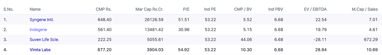 Peers: Syngene, Suven Pharma, Eurofins, SGS.