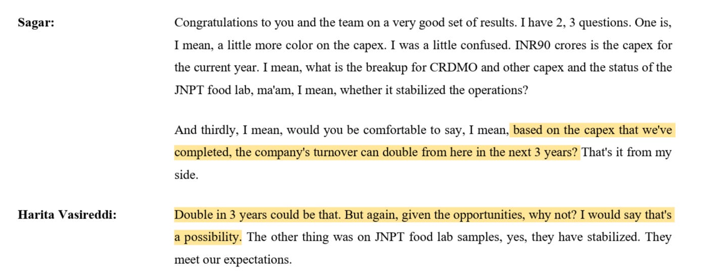 Despite capex intensity, management floated the possibility of doubling turnover in three years.