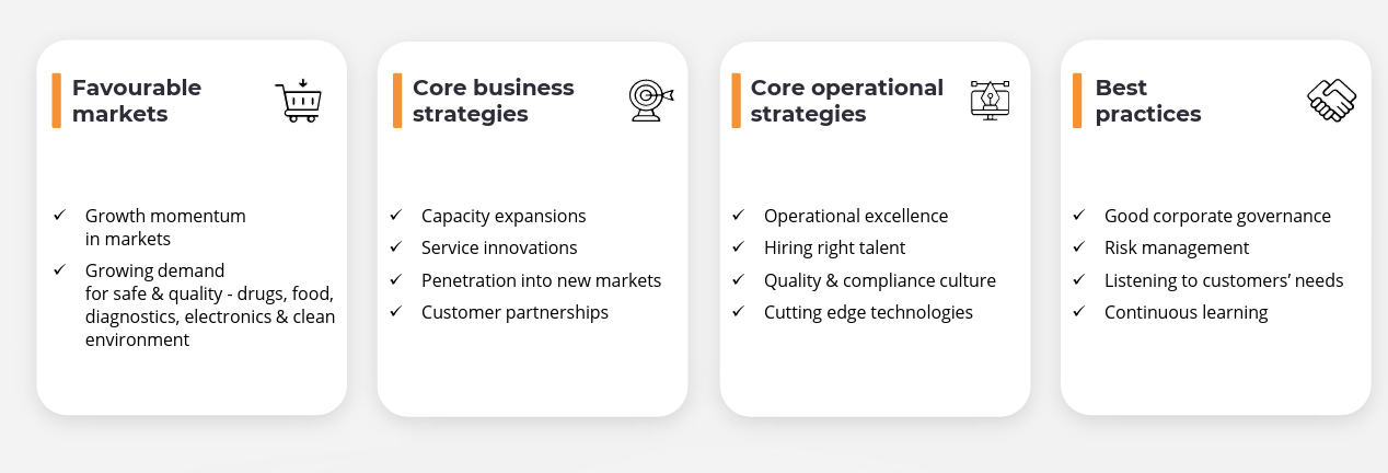 Early adoption of pharma analytical testing created long-term client stickiness in generics and biosimilars.